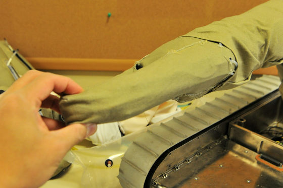 像這種裝有空氣手臂的機器人,不僅有撞到人也不會受傷的安全性,還有比起金屬製的零件可用更低成本的方式進行量產、容易大型化等優點。理論上,如果將能收藏至卡車載貨台大小的機器人充氣起來的話,甚至可以到達大型卡車那樣大的尺寸來工作。